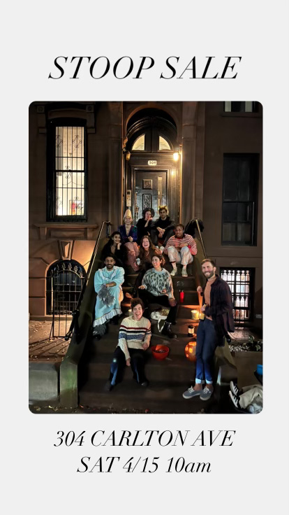 Hello from Suddenly Summer? Regardless of whatever other extreme mood swings the weather has in store for us, we have officially entered Stoop Sale Season, always the most glorious time of the year! It’s one of New York’s greatest delights, and Fort Greene in particular really does it right - you can find the fanciest threads, the rarest of books, the most niche of furniture pieces and everyone is just begging you to take it off their hands for a song.